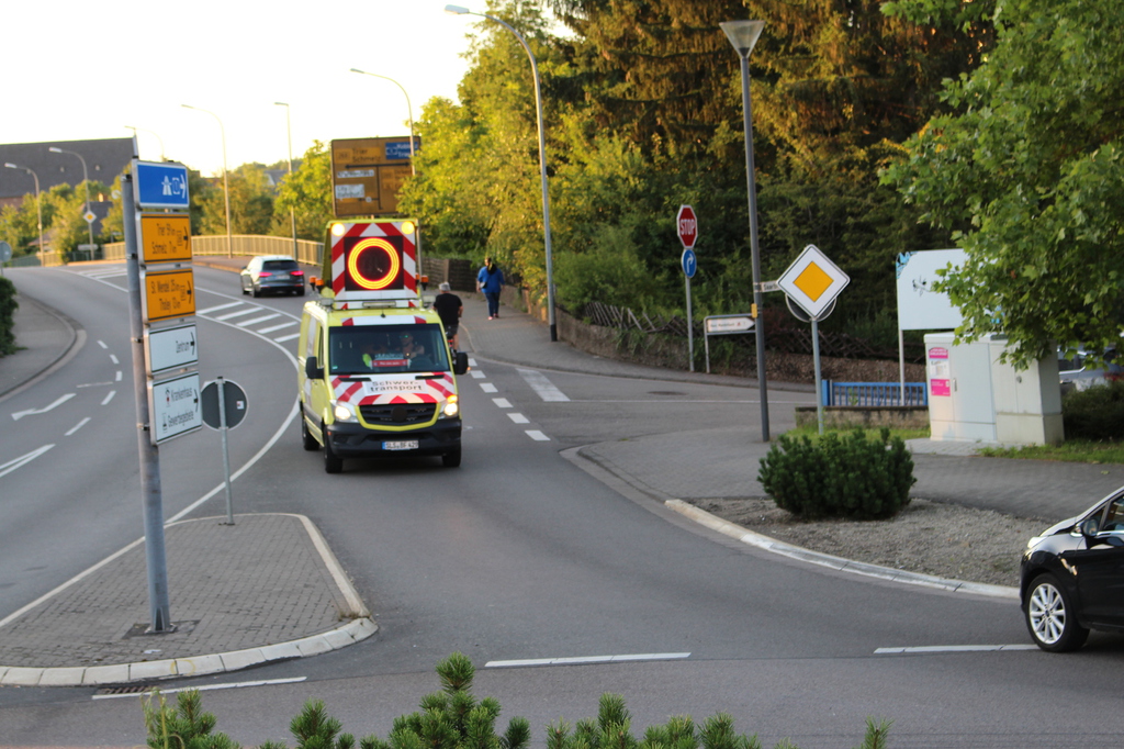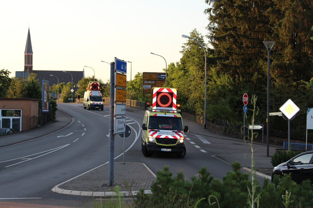 Schilderdienst mit Vorhut- und Nachhutfahrzeugen